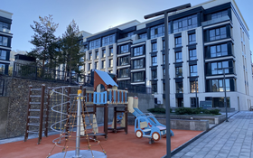 Цокольные этажи отведены под коммерческие помещения, которые занимают продуктовый магазин, химчистка и детский сад «Ботакан». Инфраструктура окружающего района оставляет желать лучшего: до ближайшей школы (гимназия № 4) и альтернативного детского садика (ясли-сад № 126) около километра. Ближайший супермаркет Interfood — на Гоголя — Калдаякова. В то же время район удобен для автолюбителей. До выезда на Восточную объездную двигаться на автомобиле всего пять минут — достаточно близко находится транспортная развязка Толе би — ВОАД. Ближайшая крупная магистраль около ЖК — улица Толе би.