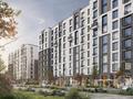 Жилой комплекс выполнен в современном минимализме: светлые фасады с панорамным остеклением, бежевые и графитовые тона. Четкие линии и витражные окна создают визуально легкий и динамичный образ.