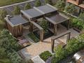 Дворовое пространство внутри жилого комплекса - это зеленый полуоткрытый двор, созданный для комфорта и уединения. Здесь доминируют плавные формы, природные линии и спокойные цвета, дарящие ощущение легкости и гармонии.