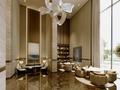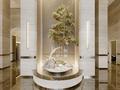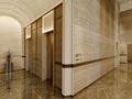 От фасада до интерьера Nexpo Global сохраняет единый архитектурный язык — чистые линии, естественные материалы и продуманные пропорции. Высокие потолки высотой 10 метров придают вестибюлю ощущение грандиозного масштаба и воздушности.
