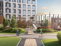 Внутренний двор OIU создан для комфортного и безопасного отдыха. Закрытая территория без автомобилей обеспечивает тишину и приватность, позволяя жителям наслаждаться спокойствием. Пространство оформлено с использованием ландшафтного дизайна, который создает уютную атмосферу. Для детей предусмотрена современная многофункциональная площадка, подходящая для разных возрастов, где они смогут активно проводить время. Зоны отдыха идеально подойдут для встреч с соседями или семейных вечеров на свежем воздухе.