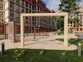 - Все малые архитектурные формы и оборудования выполнены из экологичных и натуральных материалов (лиственница, сосна и нержавеющая сталь);
