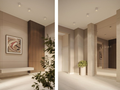 Внутренний дизайн холлов выдержан в фирменном стиле — светлый, с дизайнерскими предметами интерьера, высокими потолками и ярким освещением, уже с порога окружает гостей и жителей комплекса атмосферой домашнего уюта.