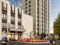 Навесные панели фасада не пропускают и не впитывают влагу, а также являются абсолютно негорючими, что поможет проекту сохранять презентабельный внешний вид долгие годы. Также для сохранения внешнего вида, на крыше каждого блока имеется система общего кондиционирования, благодаря которой, отпадает надобность в установке корзин под кондиционерные блоки на фасаде.