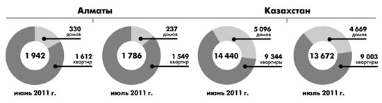 Для сравнения: в Астане в июле состоялось 772 сделки купли-продажи (по сравнению с июнем их число уменьшилось на 11.5%), из них 73 — дома и 699 — квартиры.