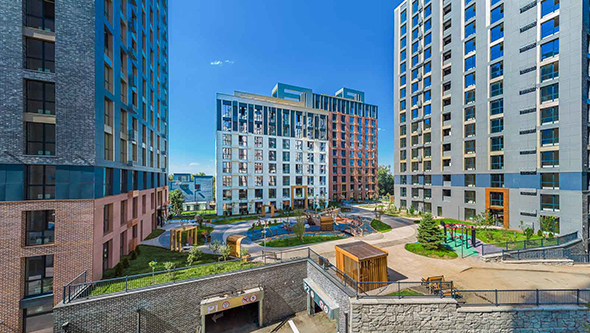 - безопасный двор, полностью изолированный от машин и оборудованный для пеших прогулок, игр и отдыха;