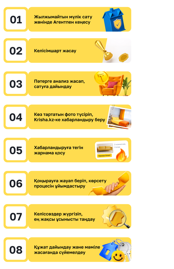 Пәтер сату ондаған қоңырау, келіссөз, клиентке көрсету және түрлі мәміле ерекшеліктерінен тұрады. «Крыша Агент» сервисі бұның бәрін өз мойнына алады.