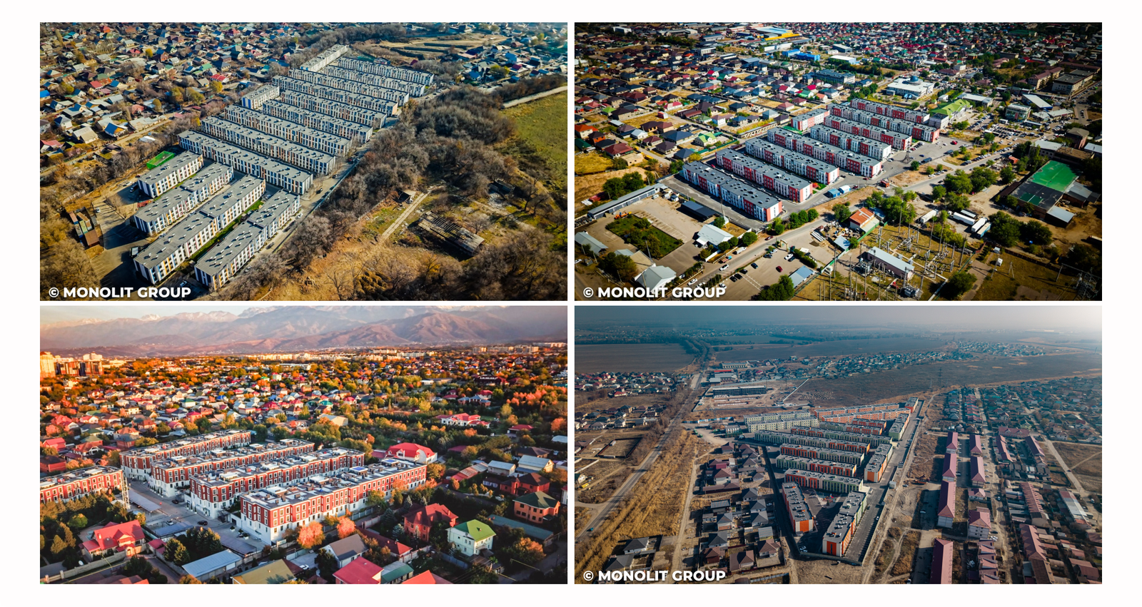 С момента выхода в девелоперский сектор MONOLIT GROUP реализовала шесть крупных жилых комплексов в Алматы и Алматинской области: TEREKTI, KEMEL-UI, TEREKTI PARK, JANA OMIR, ALASHA RESIDENCE, ZHANUYA.