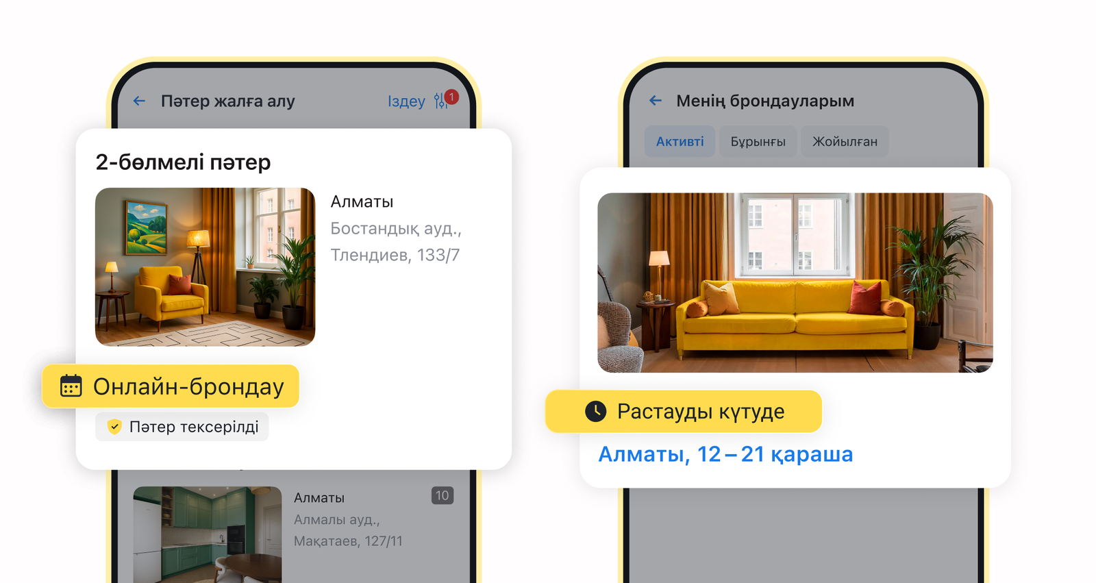 Онлайн-брондау кезінде «Пәтер тексерілді» деген белгі көрсеңіз, бұл иесі құжаттарын растағанын және жалға алу процесі барынша қауіпсіз болатынын білдіреді.