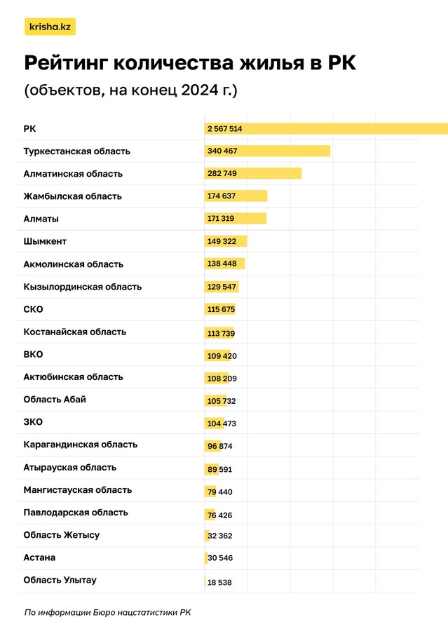 На основе данных Бюро национальной статистики (по итогам 2024 года) Krisha.kz расскажет: