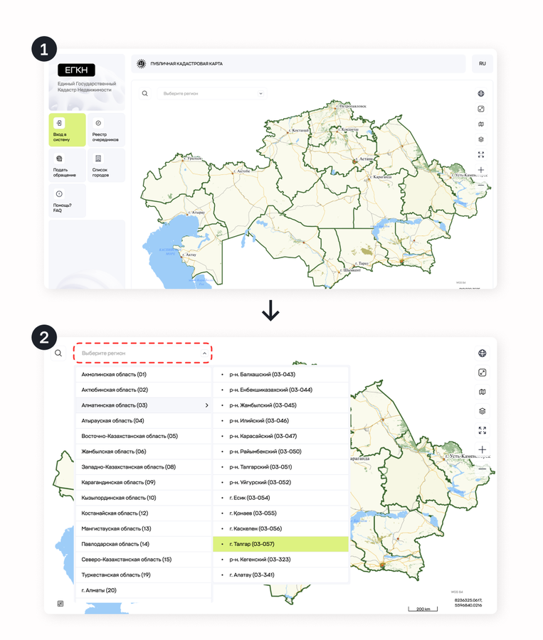2. Сделайте схему (скрин) нужного участка карты и подайте заявку через ЦОН или eGov.