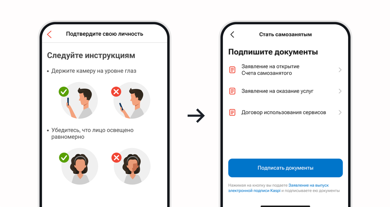 - Пройдите фотоверификацию и подпишите документы через Kaspi ЭЦП.