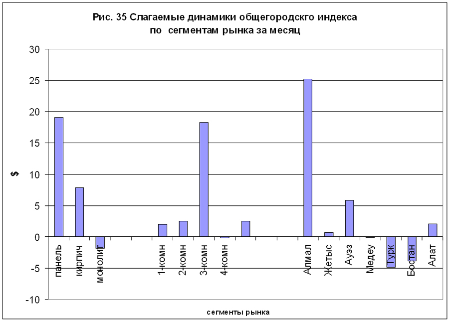 На Рис. 35 показаны слагаемые (вклады) различных сегментов рынка в августовское изменение общегородского индекса.