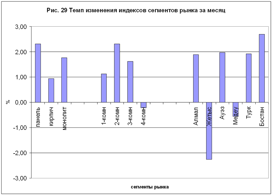— в августе наблюдается значимый рост индексов почти всех сегментах рынка (кроме Жетысуского и Медеуского районов);