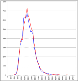 — на восходящей ветви распределения есть признаки небольшого правого дрейфа;