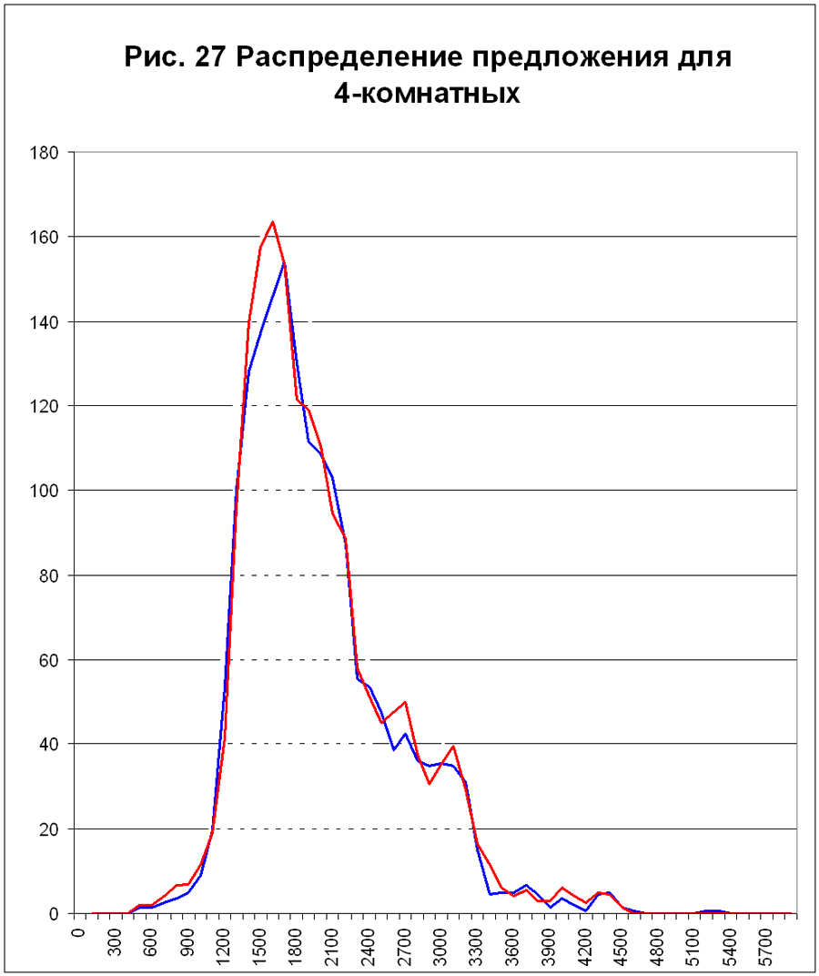 — кривая дополнительного предложения (Рис. 4) показывает, что в августе происходили два процесса: смещение рынка в сторону удорожания (правый дрейф) и дополнительный приток квартир в диапазоне индексов 1800$...2200$;