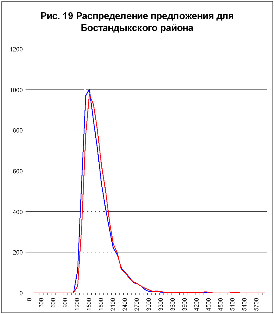На Рис. 11 показаны распределения предложения в Жетысуском районе для мая и июня, а на Рис.12 — разность этих распределений, то есть изменение структуры предложения