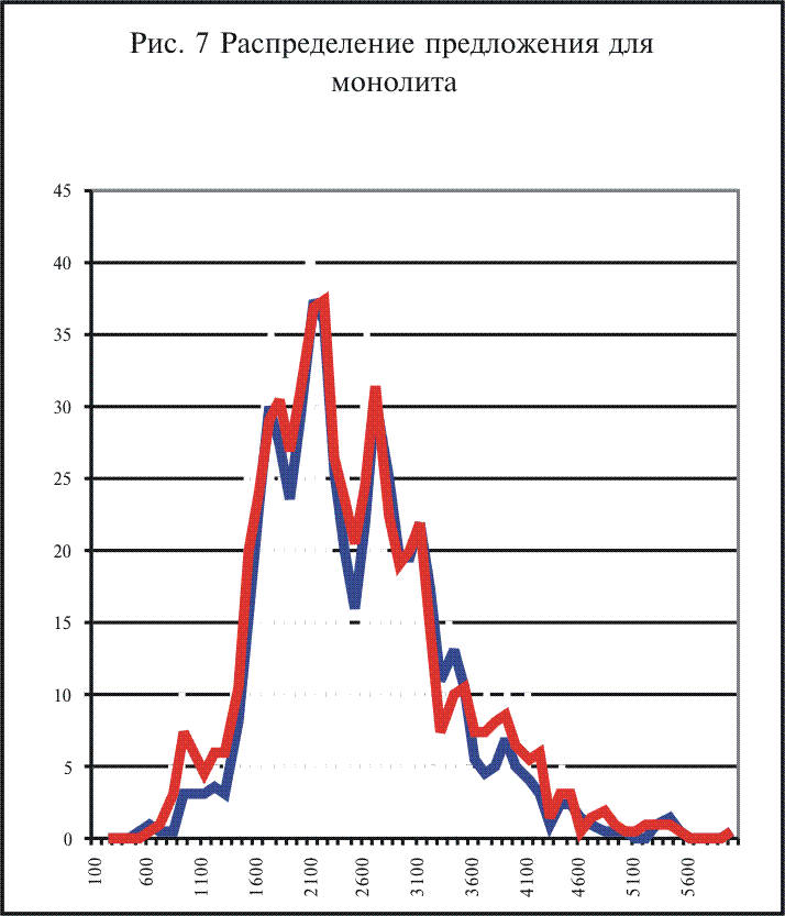 На Рис. 1 изображены распределения общегородского предложения по индексу, а на Рис.2 – разность распределений этой и прошлой недель.
