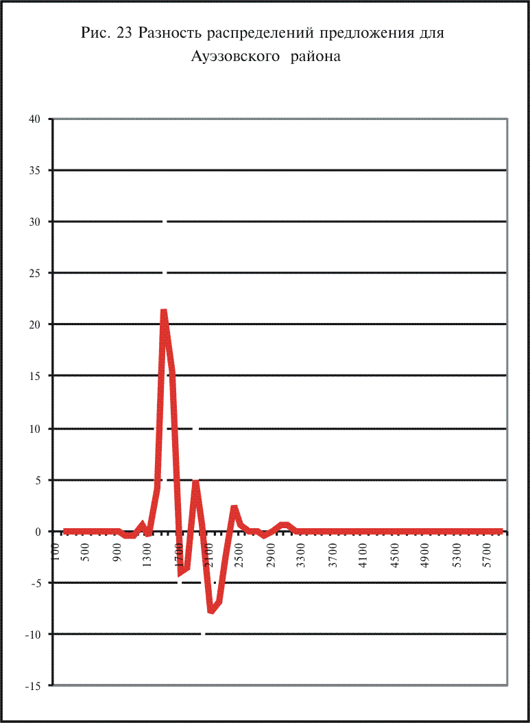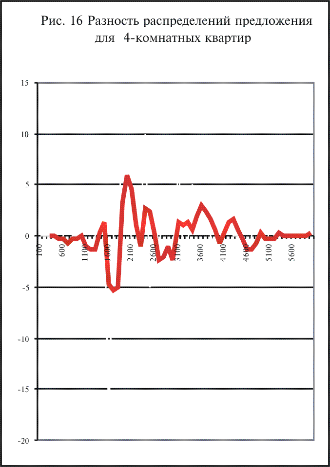 На Рис. 10, 12, 14 и и16 изображены разности распределений для соответствующих форматов квартир.