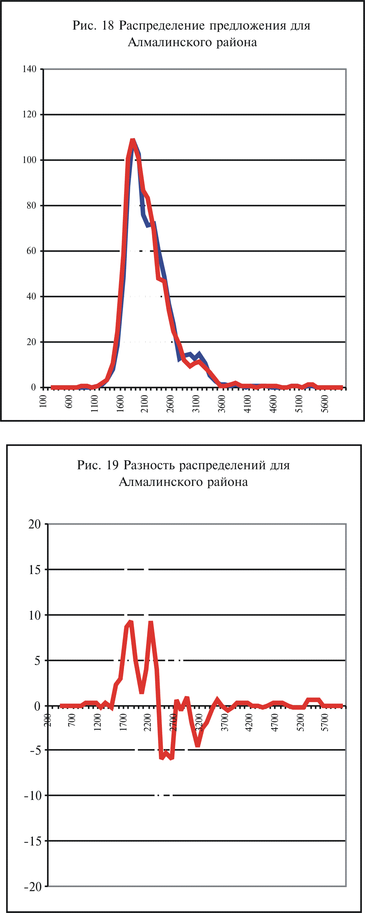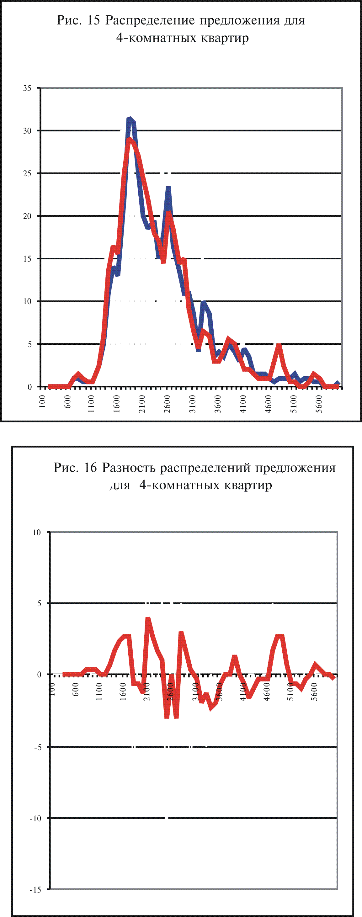 На Рис. 15 показаны распределения для 4-комнатных квартир, на Рис. 16 - разность распределений за прошедшие две недели.
