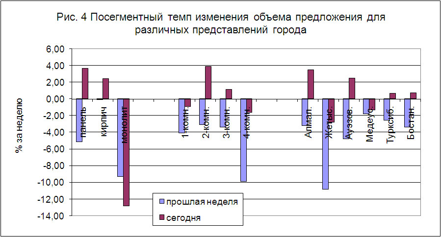 — объемы предложения в Медеуском, Турксибском и Бостандыкском районах изменились разнонаправлено и на небольшие величины;