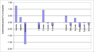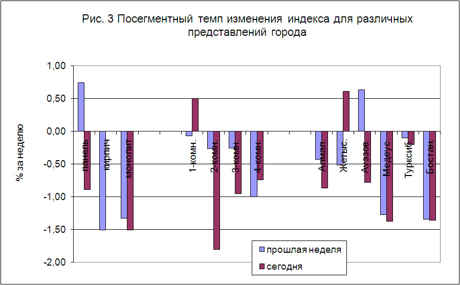 — в двух районах (Медеуском и Бостандыкском) на этой неделе падение индексов превысило 1.36% (отметим, что и на прошлой неделе в этих районах наблюдались самые высокие темпы падения индексов);