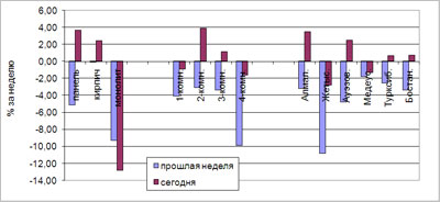 — кирпич, лидер падения прошлой недели (-1.51%), сохранил неизменным свой индекс на фоне общего снижения;
