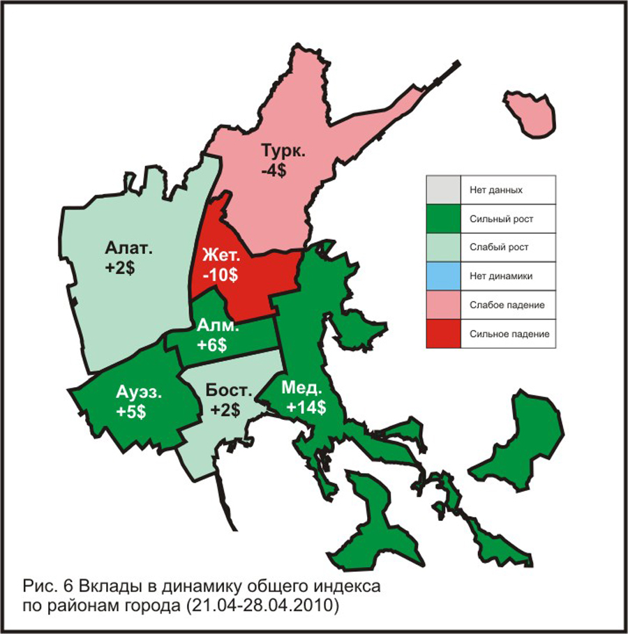 — на прошедшей неделе вклады районов в динамику среднего по городу индекса определялись изменениями долей рынка;