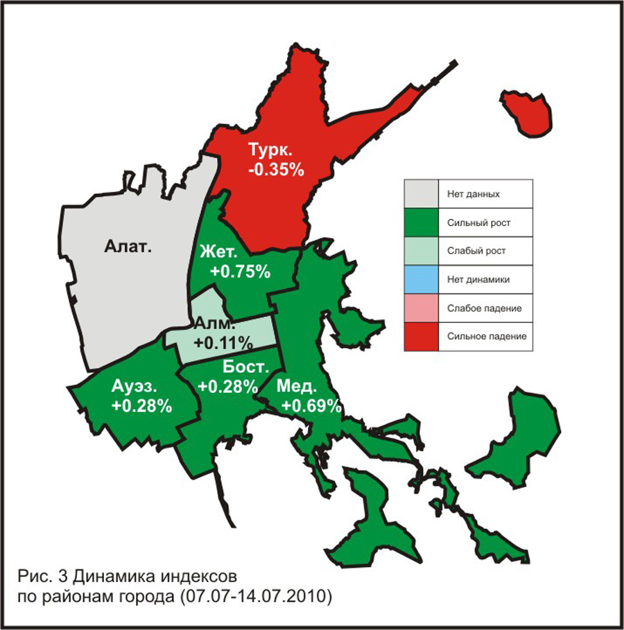 — падение индекса произошло только в одном Турксибском районе (-0.35%);