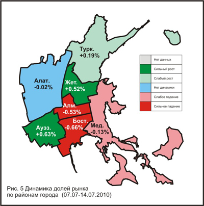 — увеличили свои места на рынке Жетысуский (+0.52%) и Ауэзовский (+0.63%) районы;