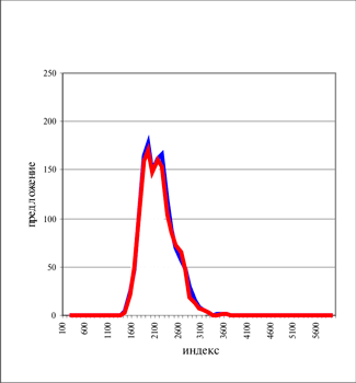 На рис. 1 показаны спектры предложения в Алмалинском районе для прошлой (синяя линия) и этой недели (красная линия). На рис. 2 показано изменение спектра предложения в Алмалинском районе за прошедшую неделю.