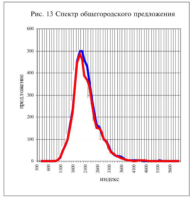 Рис. 13 показаны спектры общегородского предложения для прошлой (синяя линия) и этой недели (красная линия).