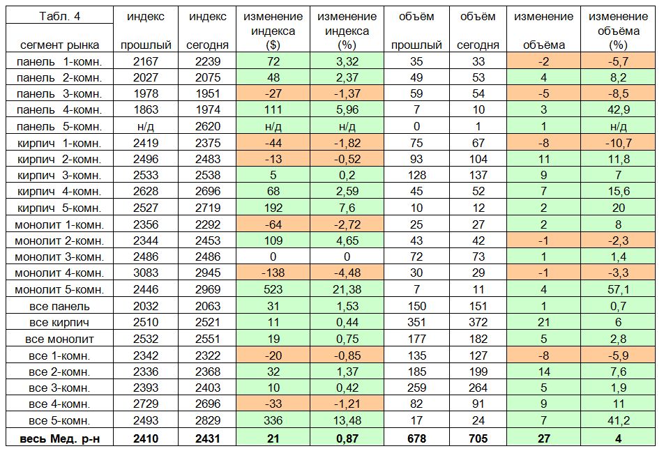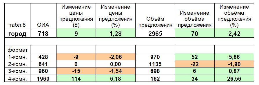 — заметным перераспределением общего предложения в пользу относительно дешевого жилья (-4$).