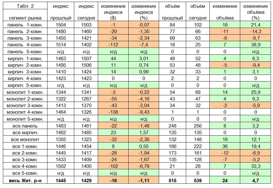 Недельное изменение среднего по городу индекса (-12$) определяется следующими факторами:
