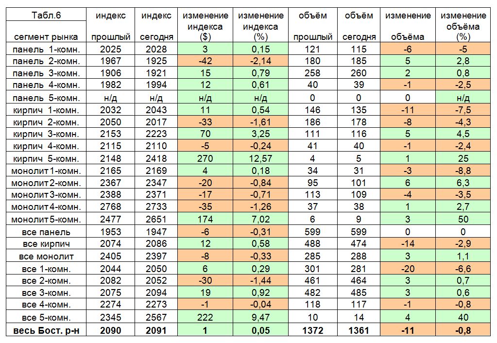 Недельное изменение среднего по городу индекса (-4$) определяется следующими факторами: