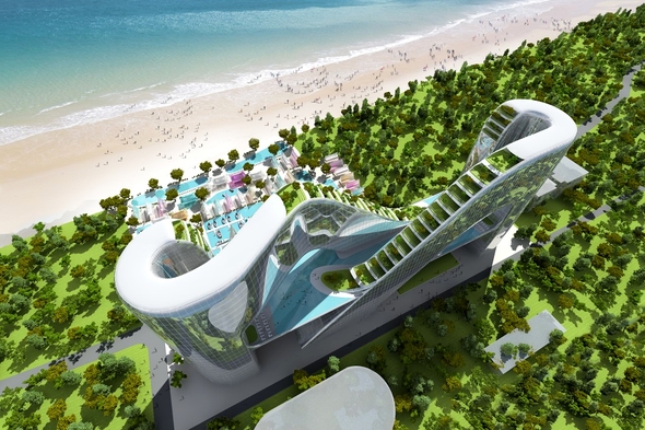Отель спроектировали местные архитекторы. Общая площадь всех жилых комнат, их по проекту будет 946, составит 30 тысяч квадратных метров.