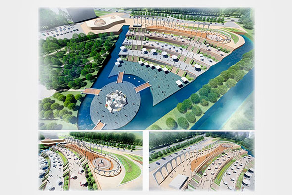 Вторая зона протянется вдоль пр. Абая. Как известно, со стороны дороги здесь имеется большой уклон. Авторы намерены превратить его в благоустроенный каскад с небольшими речками. У основания конструкции намечено возвести Площадь Любви и Верности и мемориал в виде ласточек.