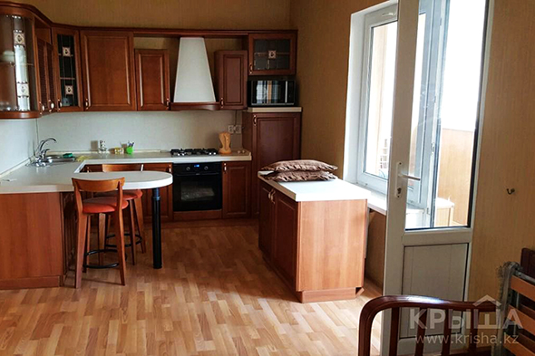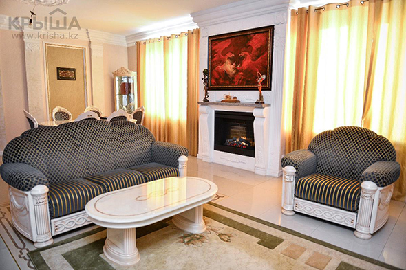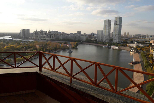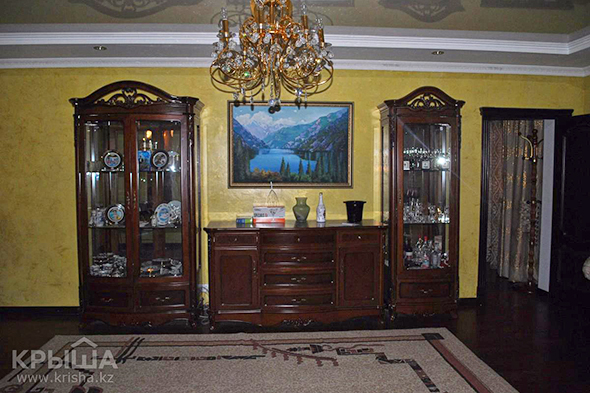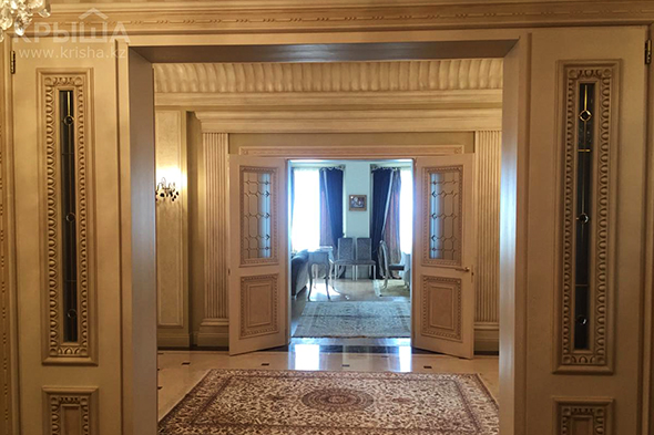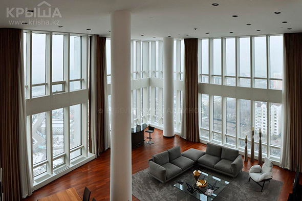 Пятикомнатные апартаменты площадью 329 кв. м находятся на 16-м этаже ЖК «Звезда Астаны» на берегу реки Есиль. Дом 2003 года постройки, в 2014-м был перепроектирован и отремонтирован. Имеется две спальни, холл, вестибюль, гостиная со столовой зоной, кабинет, детская комната, несколько балконов, финская сауна, а также закрытый доступ на этаж и видеонаблюдение. Квартира полностью меблирована. Кстати, здесь установлено альпинистское оборудование на случай экстренного спуска.