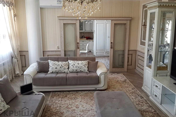 Пятикомнатные двухуровневые апартаменты площадью 270 кв. м расположены на 8-9-м этаже монолитного дома 2008 года постройки. В квартире три спальни, гостиная, буфет с кухней, два гардероба, одна кладовая, четыре остеклённые лоджии, четыре санузла, во всех комнатах сплит-система. Из окна прекрасный вид на Каспийское море.