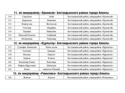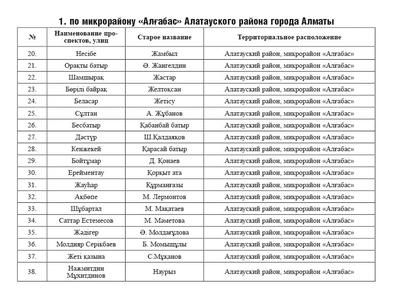 В Алматы рассматривают вопрос о переименовании 164 улиц, среди которых 118 находятся в Алатауском районе и 46 в Бостандыкском. Данное предложение было озвучено на расширенном заседании постоянной комиссии по социально-культурному развитию маслихата города. Соответствующий протокол опубликован в газете «Вечерний Алматы».