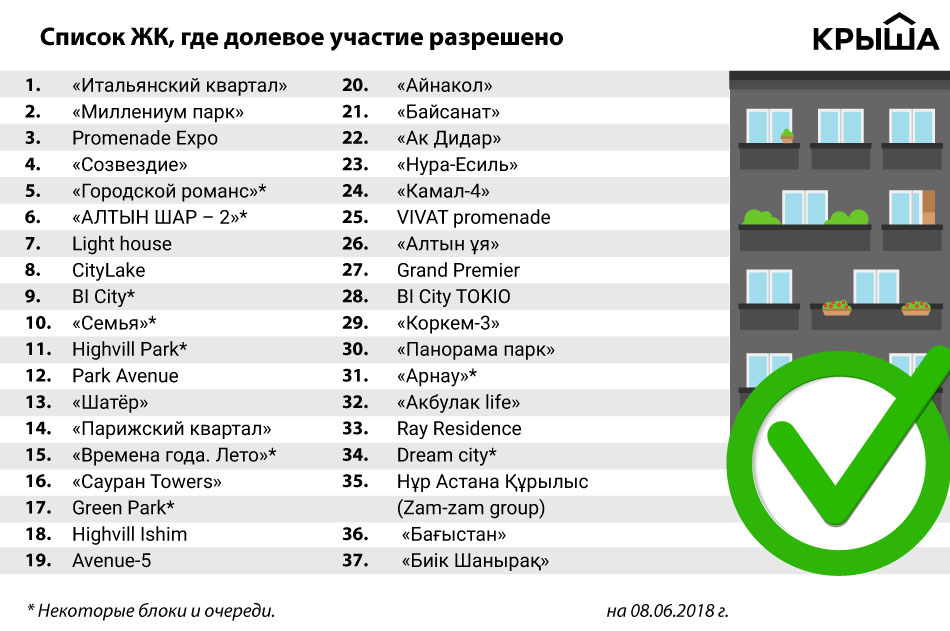 Управление архитектуры и градостроительства Астаны расширило белый список долевых объектов. На сегодняшний день насчитывается уже 37 комплексов, застройщики которых получили разрешение на продажу квартир в строящихся домах.