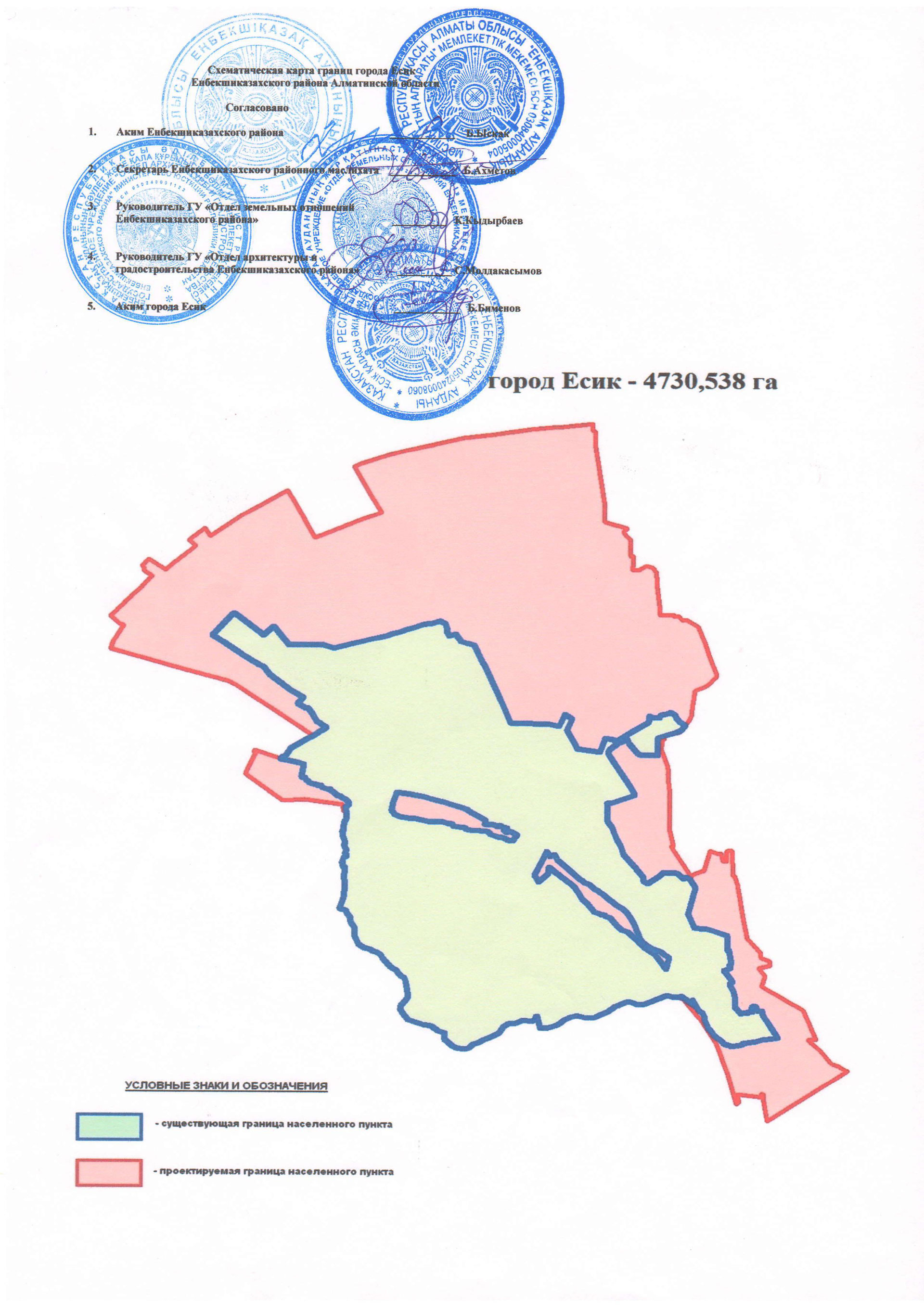 Граница города Есик в Алматинской области изменится. К нему присоединят 2 548.272 га земель собственников и землепользователей. Соответствующее постановление принято областными акиматом и маслихатом. До конца июля оно будет находиться на публичном обсуждении.