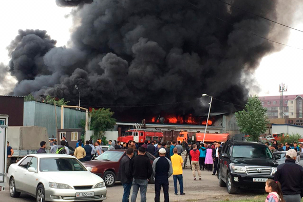 В Алматы, на одном из рынков на Северном кольце, горят складские помещения с металлопластиковыми изделиями. Примерная площадь пожара — 2 200 кв. м.