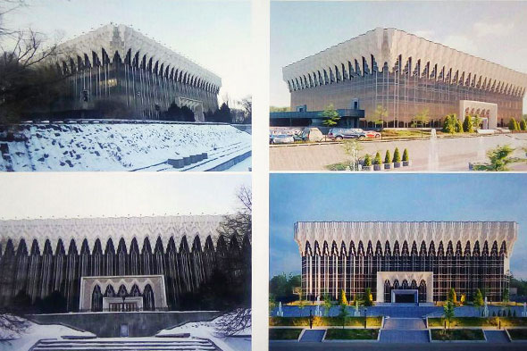 Напомним, АСК, состоящий из двух зданий, был построен в 1983 году. Комплекс — важная композиционная часть ансамблевой застройки площади Республики. В нём впервые был применён почти полностью остеклённый фасад с восточными мотивами в виде сталактитов.