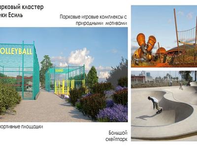 Возле реки Есиль будет создан парковый кластер со смотровыми и спортивными площадками, скейт-парком.