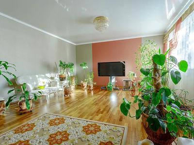 Квартира расположена в бывшем детском саду (документы в порядке). Площадь — 260 кв. м, потолки более 3 м: холл, кухня (14 кв. м), зал, гостиная, 3 спальни, 2 санузла, сауна. Евроремонт. Меблирована.