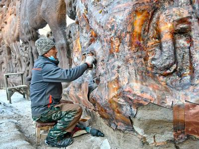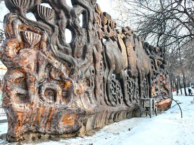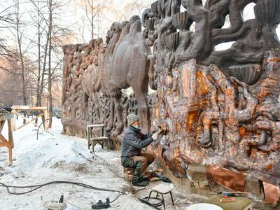 В Алматы восстанавливают декоративное рельефное панно «Верблюды» в сквере Дружбы, расположенном между Дворцом Республики и гостиницей «Казахстан» вдоль набережной р. Малая Алматинка.