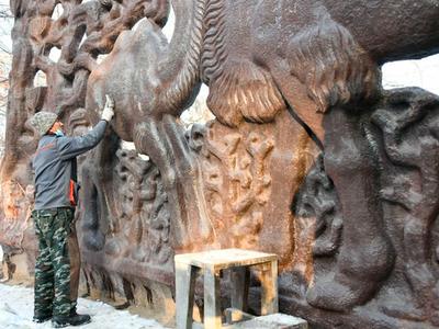 После этого воспроизведут чеканку, проведут тонировку слоя и потенировку для придания определённого тона. Реставрация 38-летнего панно займёт около десяти дней.