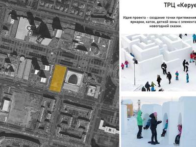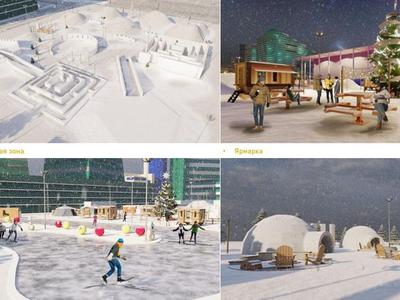 На площади перед ТРЦ «Керуен», где пройдёт новогодняя ярмарка, планируют создать снежный городок с лабиринтами, иглу и катком.