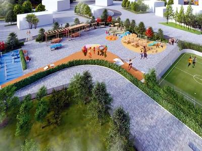 Планируется оборудовать футбольное поле, игровую и тренажёрные зоны, места для тихого отдыха и т. д.